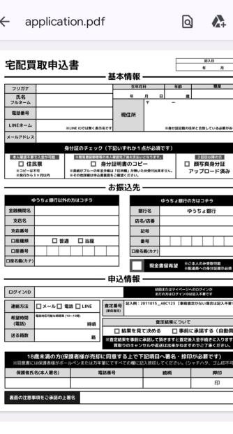 上記の紙をプリントアウトしてから、必要事項を記入する必要があります。さらに免許証などのコピーも必要になります。