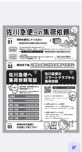 佐川さんに電話し、日時を設定し集荷依頼をしました。