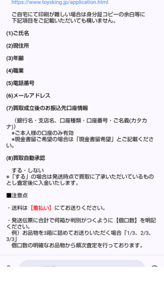 下記のトイズキングの無料査定から申し込みをしてみました。