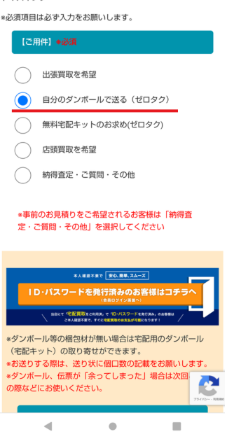 今回は自分で段ボール用意しましたが、段ボールがない方は無料で段ボールを用意してくれるみたいです。