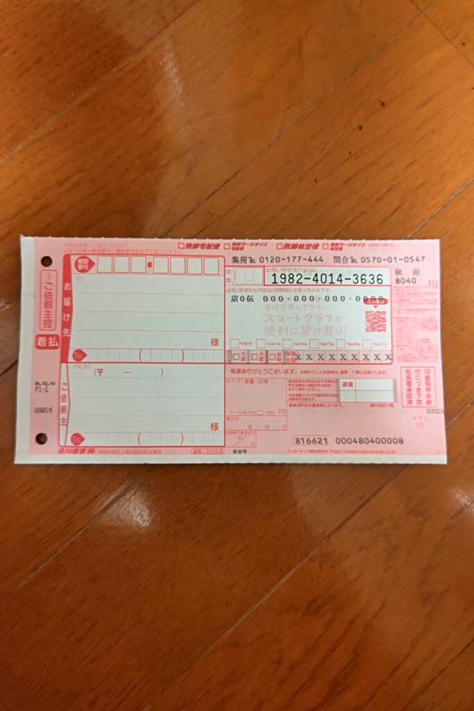 今回私は家の近くに佐川急便があるので着払い伝票を佐川さんからもらってきて自分で用意しました。